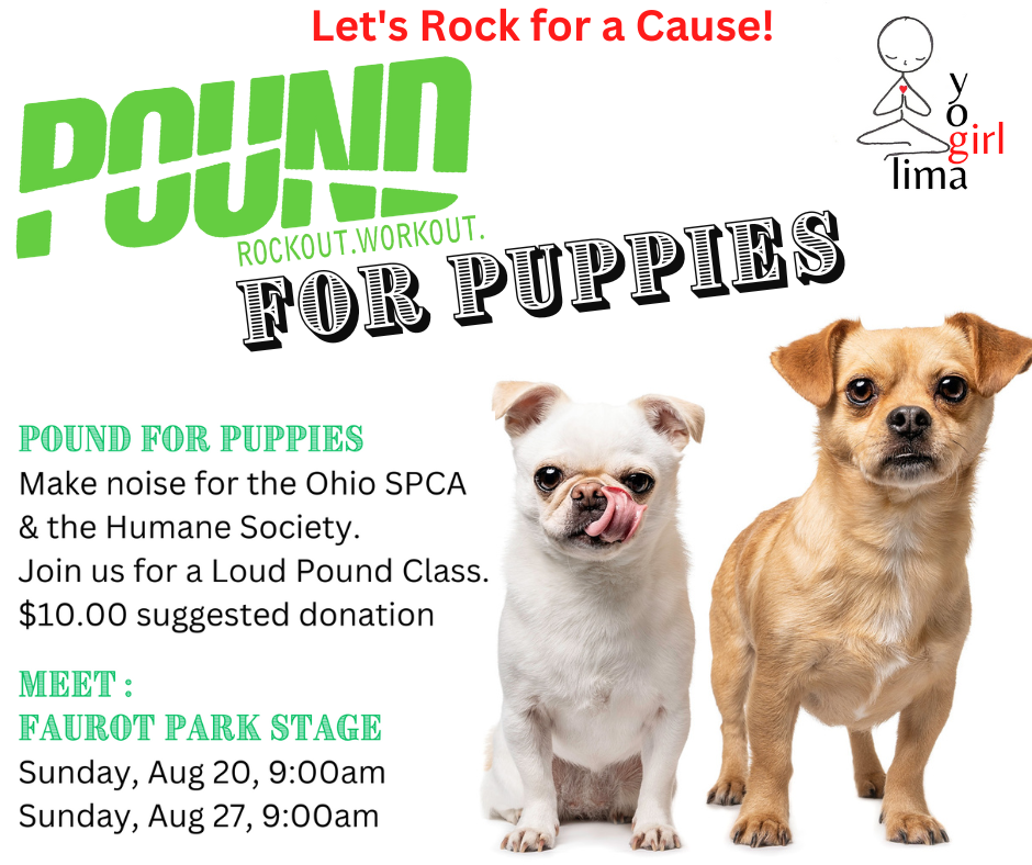POUND for PUPPIES will take place 2 Sundays in a row (Aug 20 & Aug 27) both from 9am to 10am at the Faurot Park Stage Pavilion.